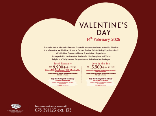Early Bird Booking Until 10 February THB 10,800 ++ per couple